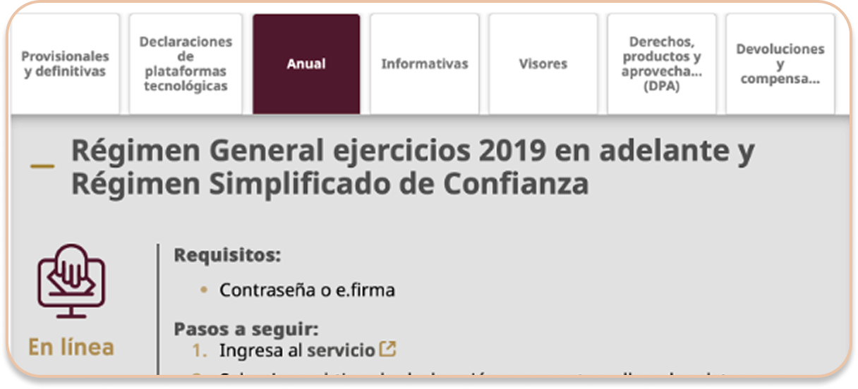 3. Ve a la sección de Declaraciones y busca: "Presenta tu Declaración Anual de personas morales. Régimen General o RESICO".