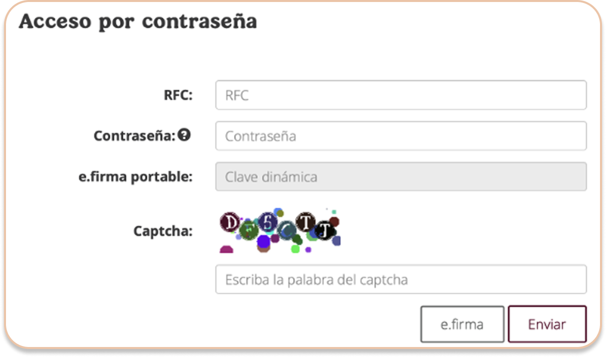 4. Autentícate con tu RFC, Contraseña o directamente con los archivos de tu e.firma.