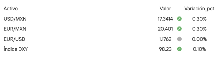 Mercados: La Bolsa Mexicana (BMV) abrió a la baja (-0.52%) y el peso se depreció a 17.34 unidades, reaccionando al combo de "petróleo caro + economía local lenta".