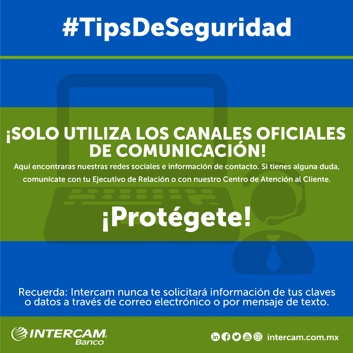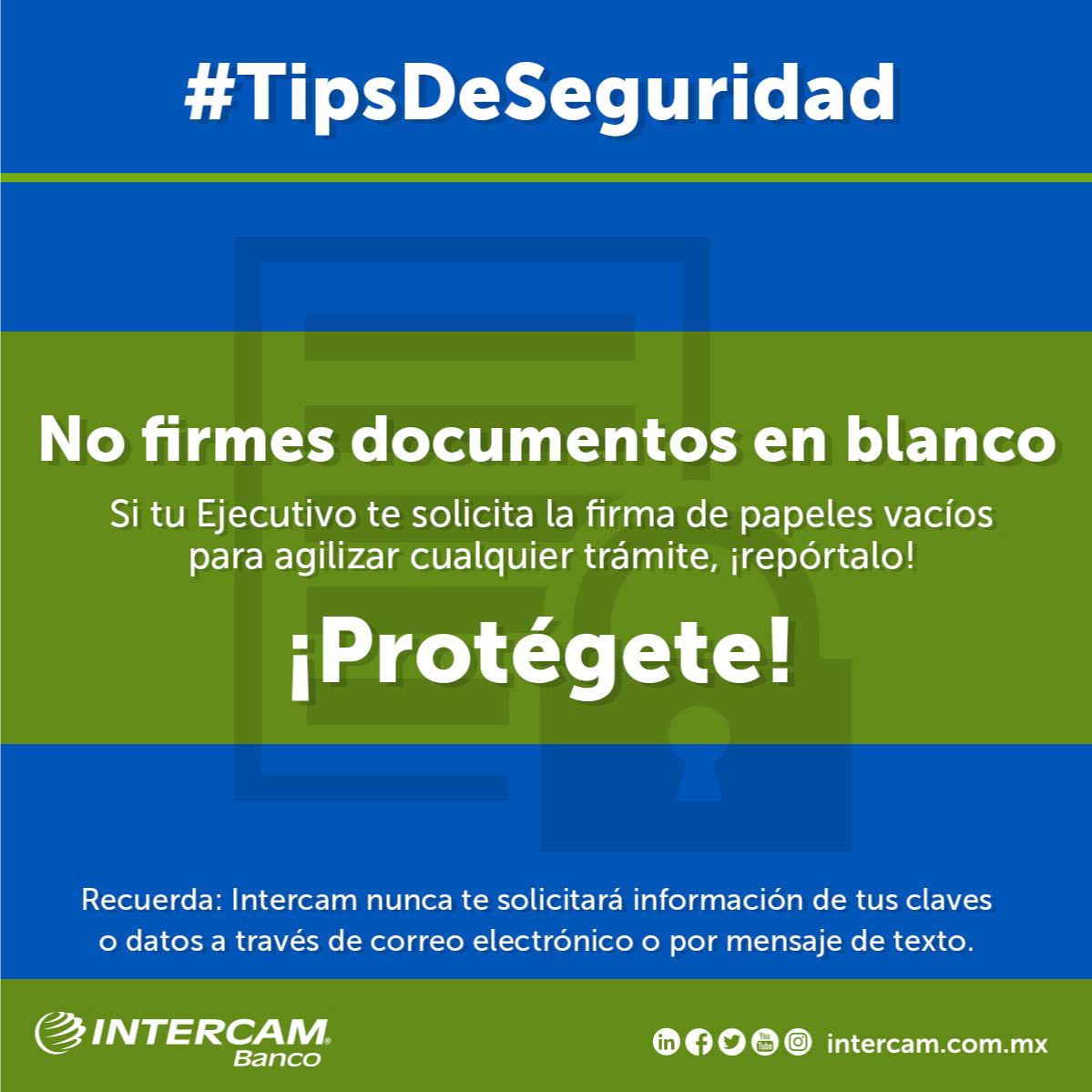 - Nunca te solicitaremos información confidencial como tu NIP, valores TOKEN, códigos de seguridad de tu tarjeta.